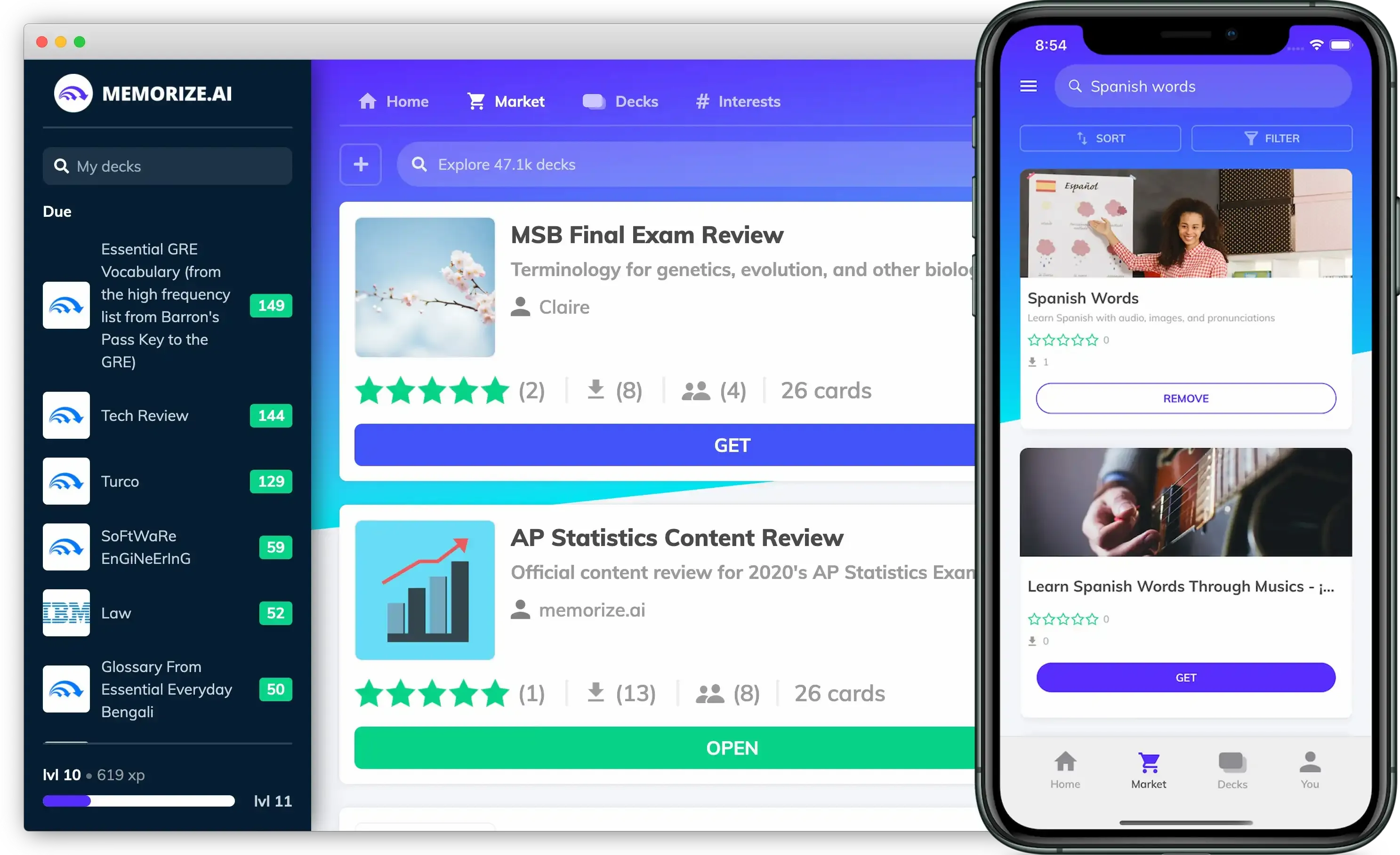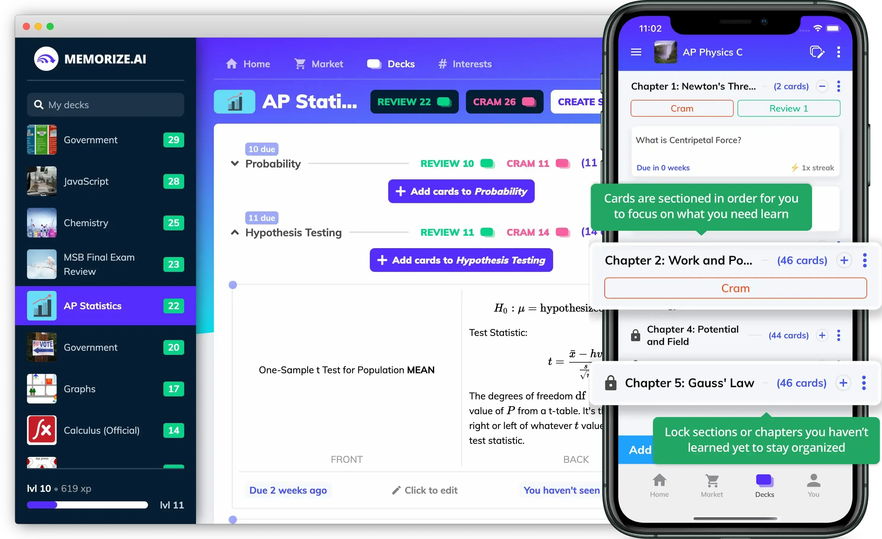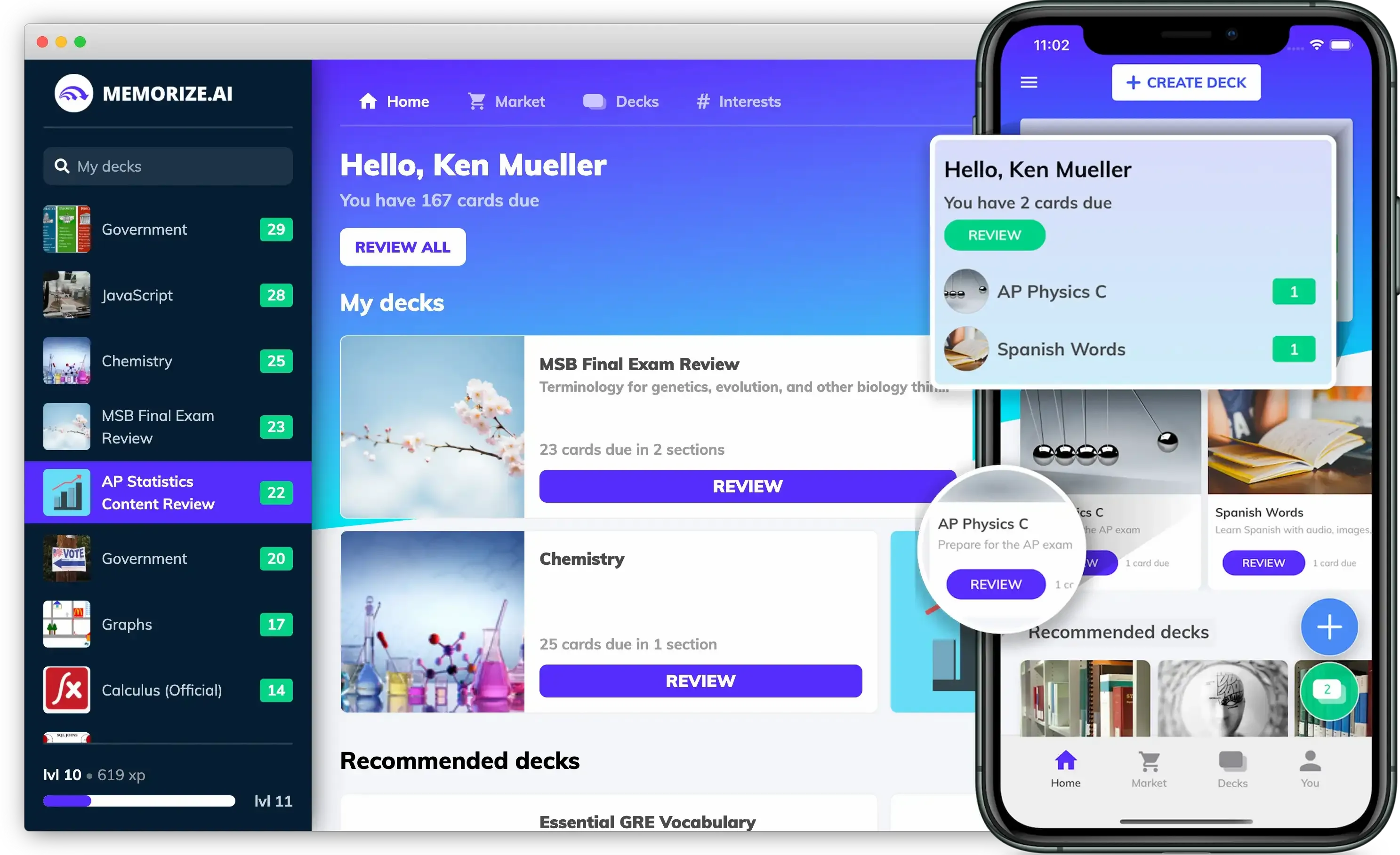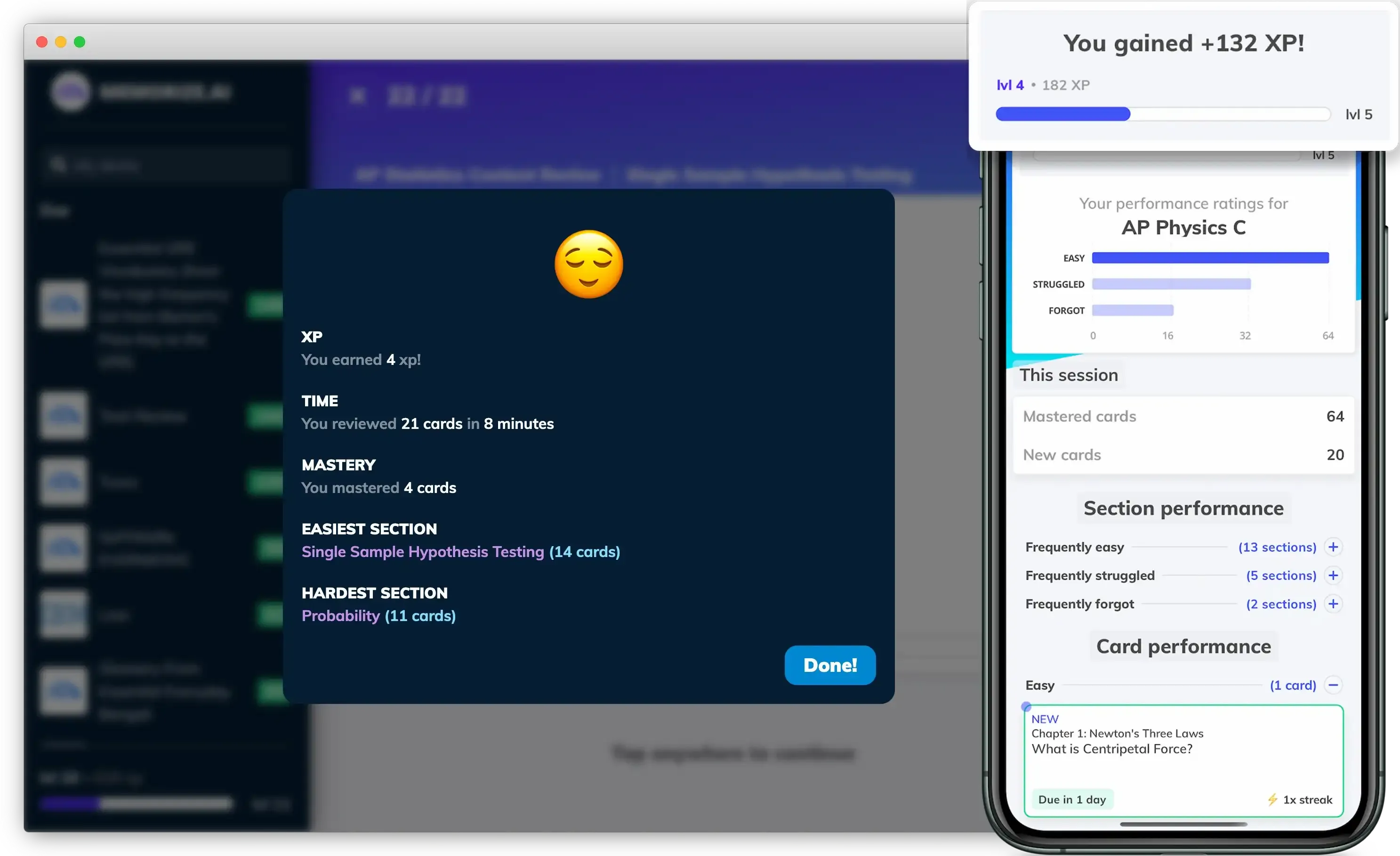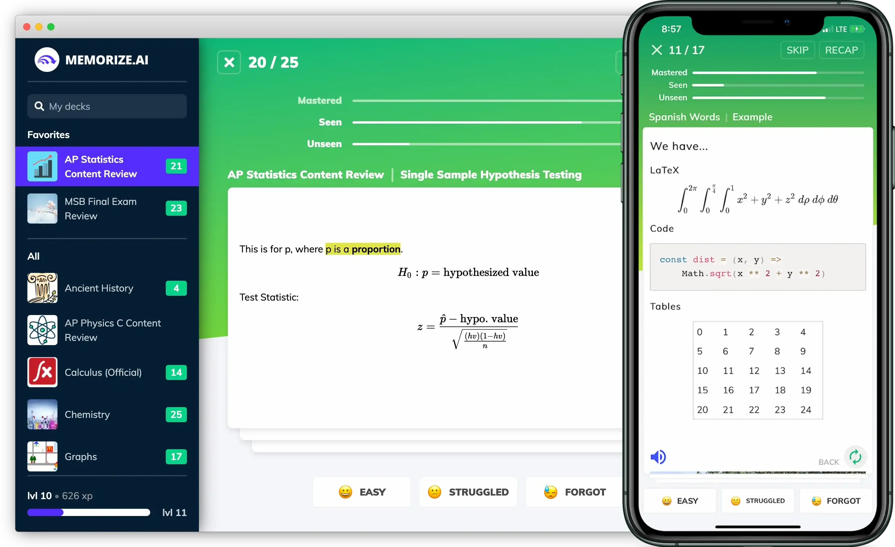 Tired of long study sessions? Memorization is strongest when timing it just right. Try to recall too early and it won't stick. Too late and you'll forget. Struggle a little to remember and you won't forget! We use artificial intelligence to get this spacing perfect.